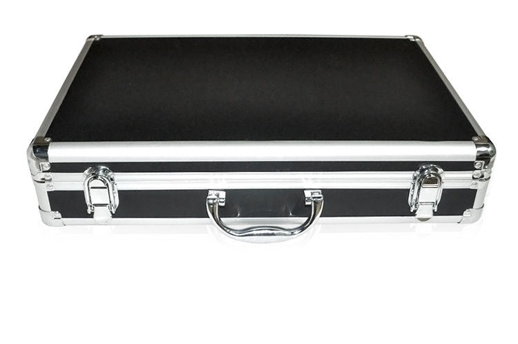 package: metallic case in a carton box