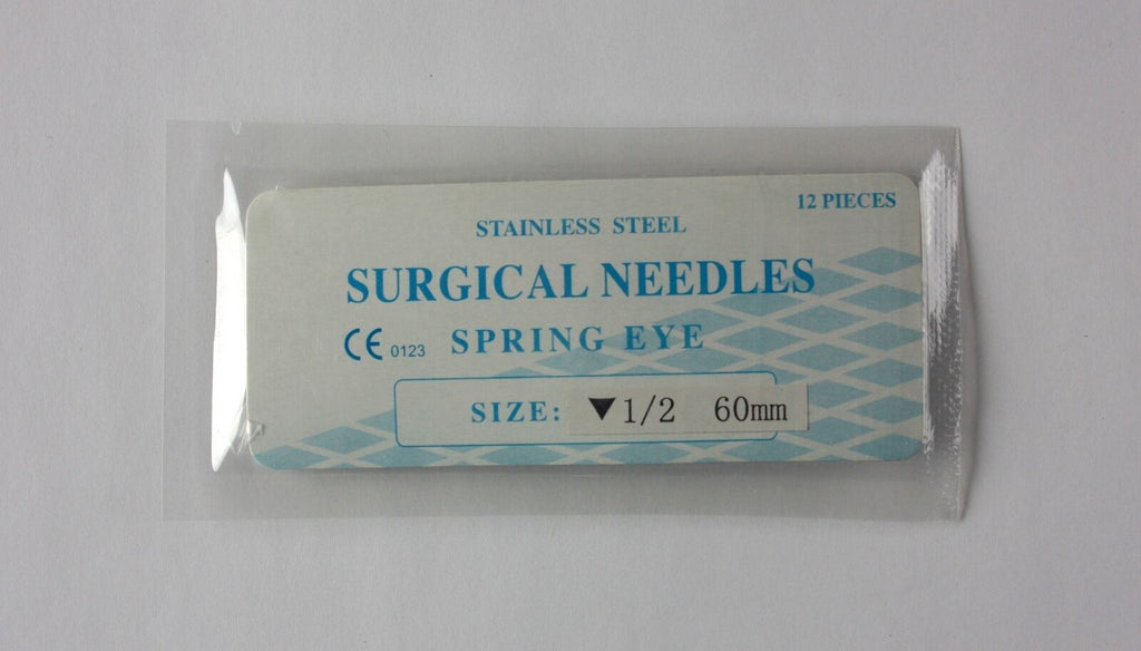 Veterinary SS Surgical Needles, Spring Eye, Reverse, 1/2 Circle, 60mm, 12 Pack